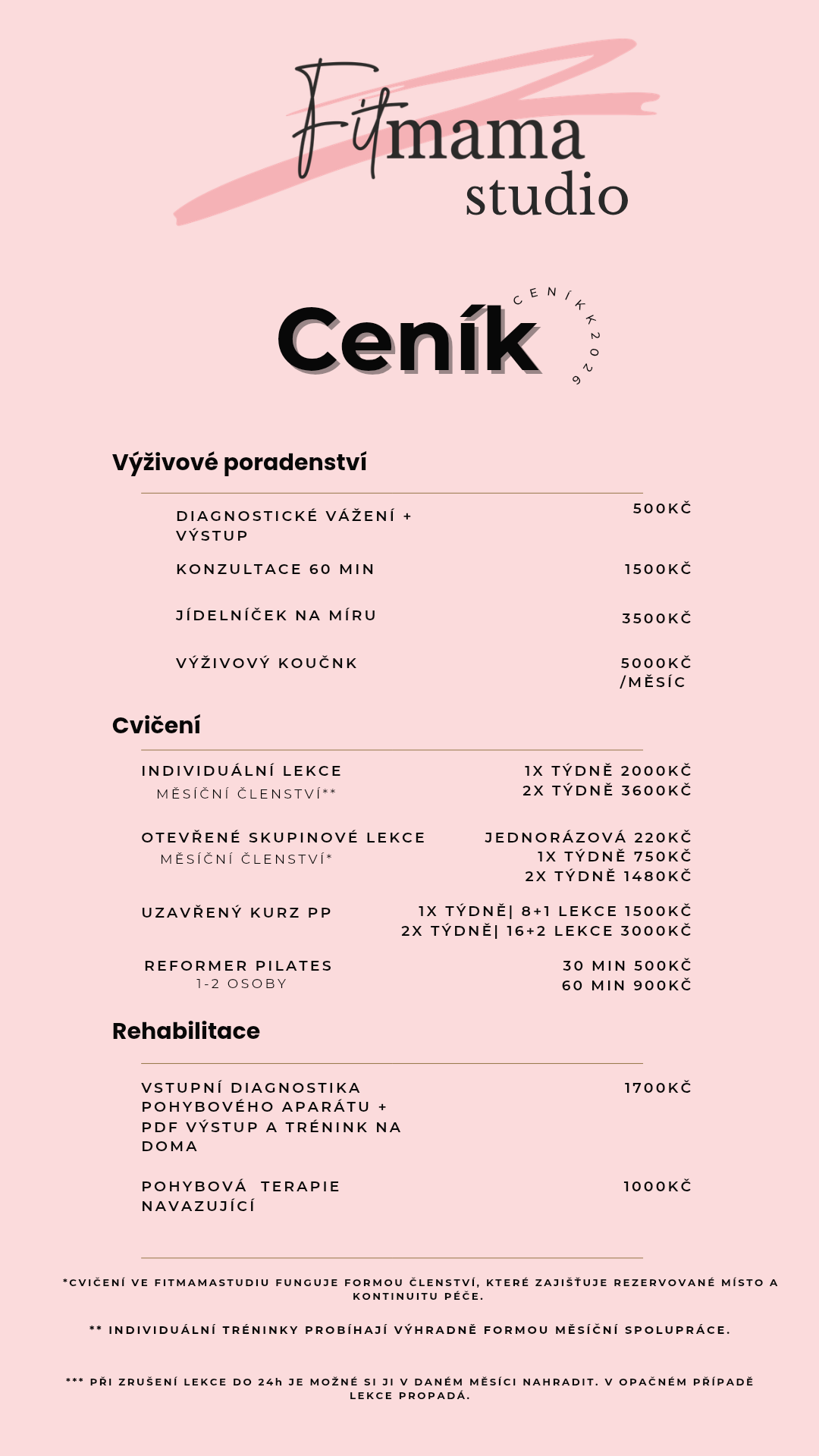 Ceník pro rok 2026